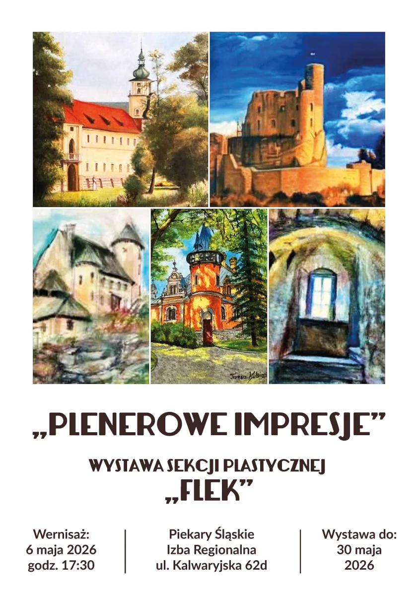 W Piekarach Śląskich zapowiada się naprawdę malarski wieczór 6 maja w Izbie Regionalnej otwiera się wystawa „Plenerowe impresje” przygotowana przez artystów Sekcji Plastycznej Flek. To spotkanie z twórczością lokalnych pasjonatów sztuki, którzy od lat pokazują, że plener, kolor i dobra energia potrafią świetnie iść w parze. Warto zajrzeć i zobaczyć to na własne oczy.